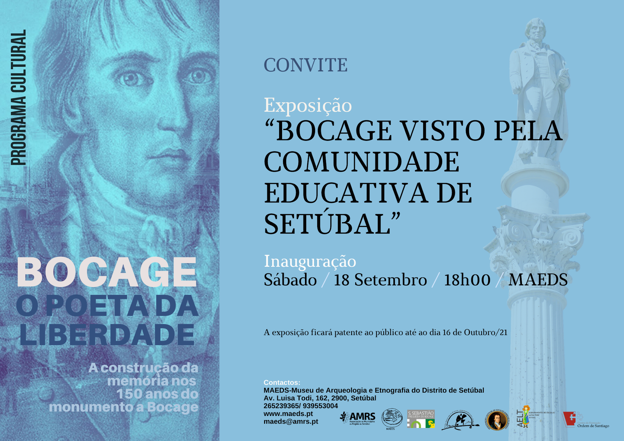 Recordamos que amanhã, pelas 18h00, no MAEDS, inauguramos a exposição “BOCAGE VISTO PELA COMUNIDADE EDUCATIVA DE SETÚBAL”, integrada no programa cultural “Bocage o Poeta da Liberdade. A construção da memória nos 150 anos do monumento a Bocage”.