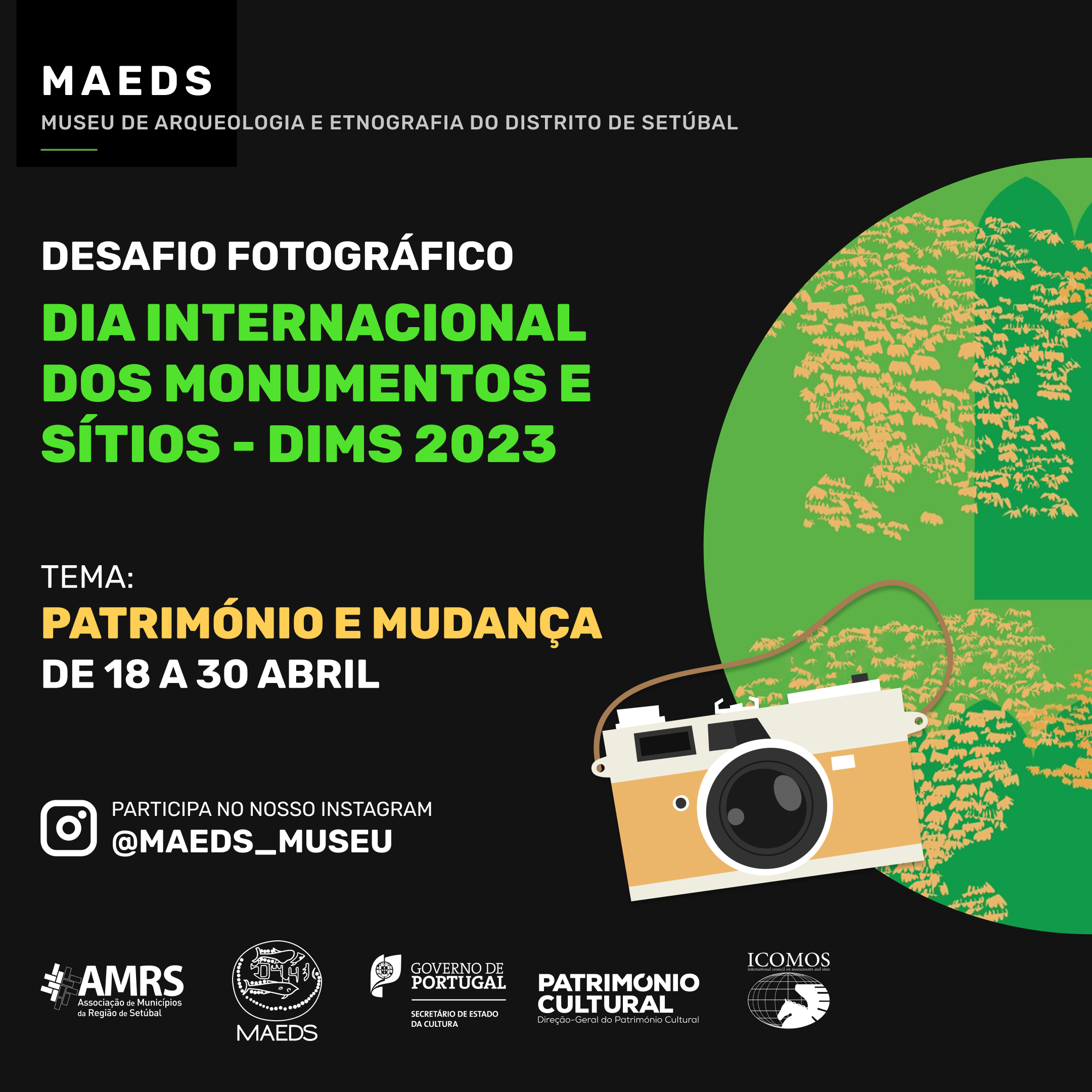 O MAEDS - Museu de Arqueologia e Etnografia do Distrito de Setúbal celebra o Dia Internacional dos Monumentos e Sítios 2023 com a realização do desafio fotográfico “Património e Mudança” que decorre no Instagram, de 18 a 30 de abril.