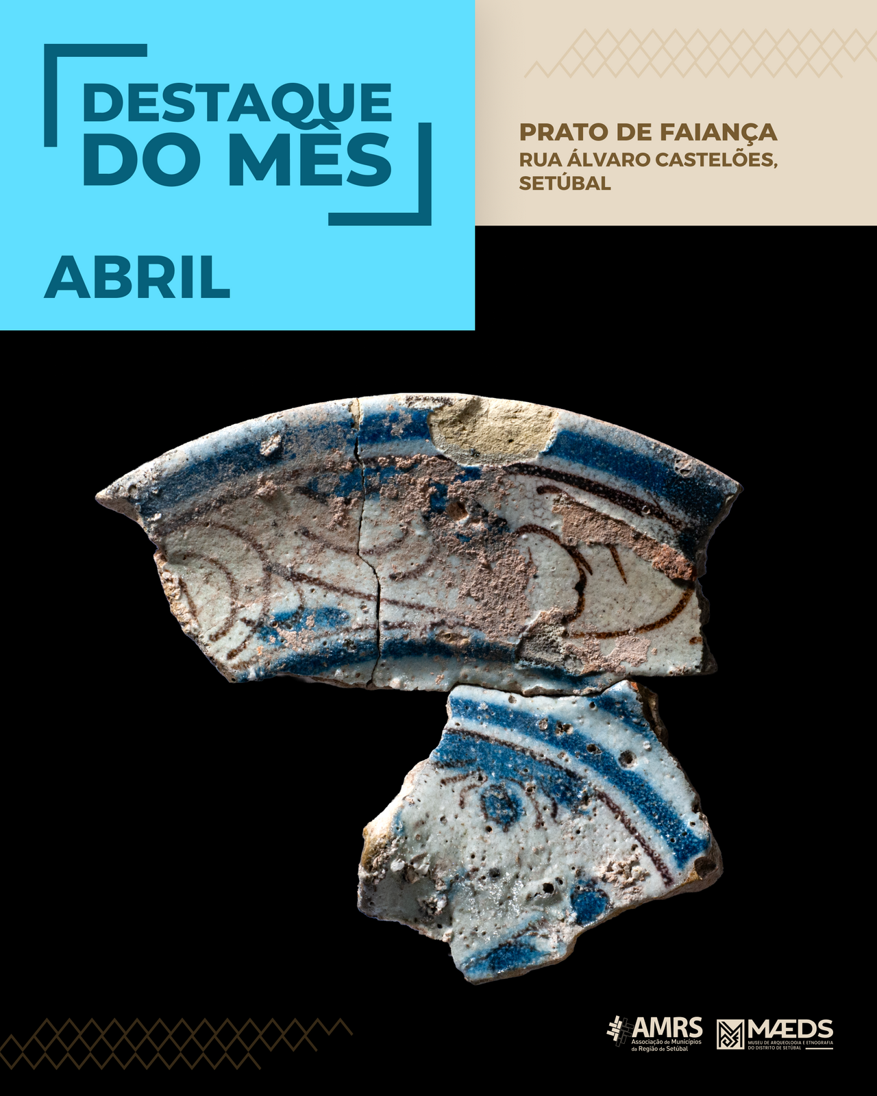 Este mês apresentamos um prato de faiança decorado a azul de cobalto e violeta de manganês, com “caracóis barrocos” estilizados na aba.